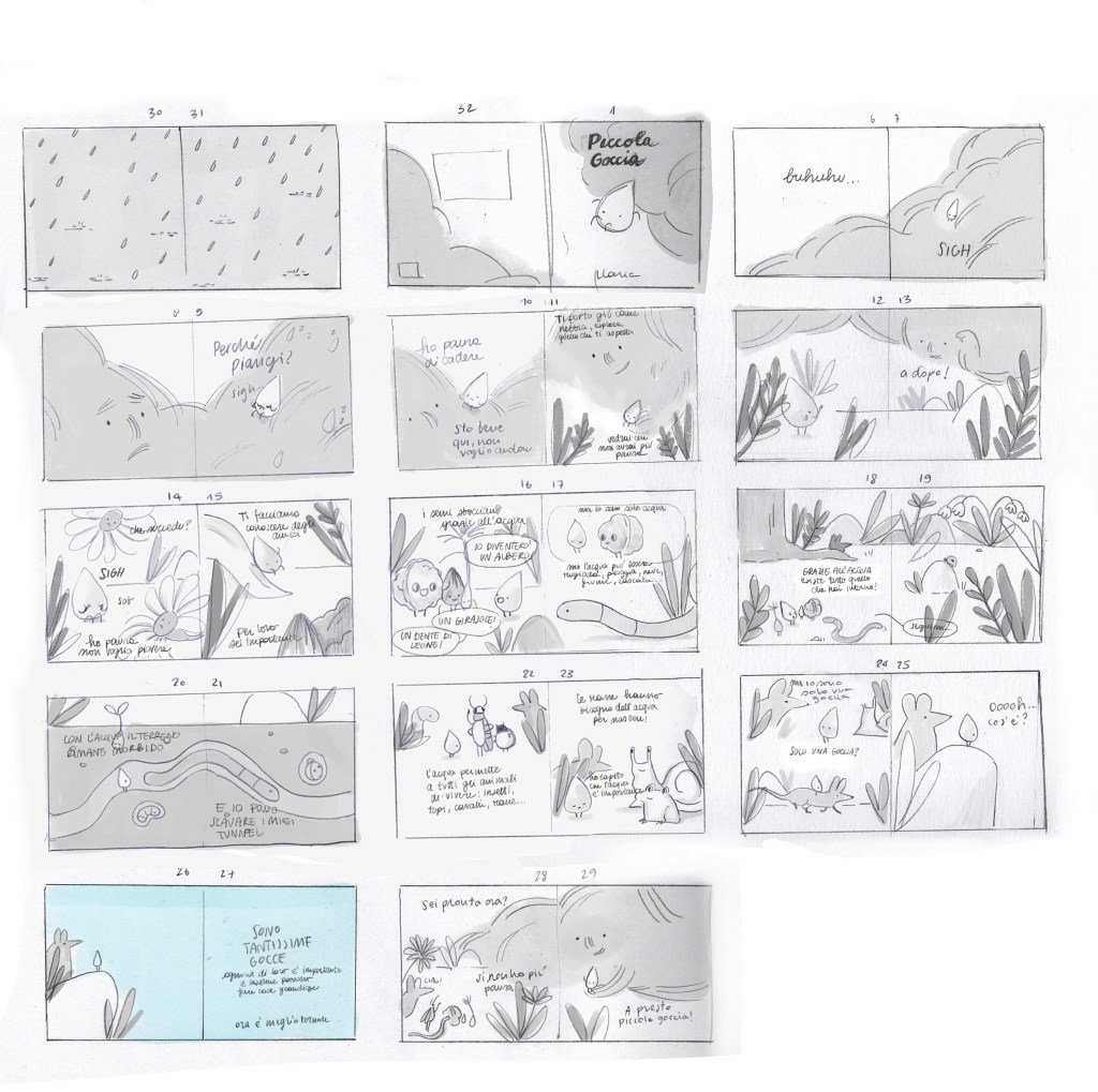 Dopo un paio di version di storyboard ed alcuni accorgimenti per capire quanto lungo volevo che fosse ho sviluppato alcune tavole di cui sono piuttosto soddisfatta.