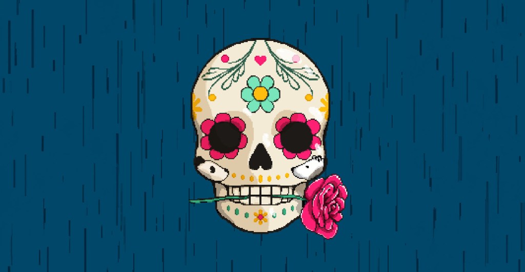 Un teschio messicano, con un piccolo rimando al videoclip della canzone, cn una piccola animazione per accompagnare l’ascolto.
